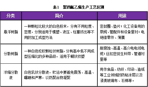 表1  聚四氟乙烯生產工藝區別